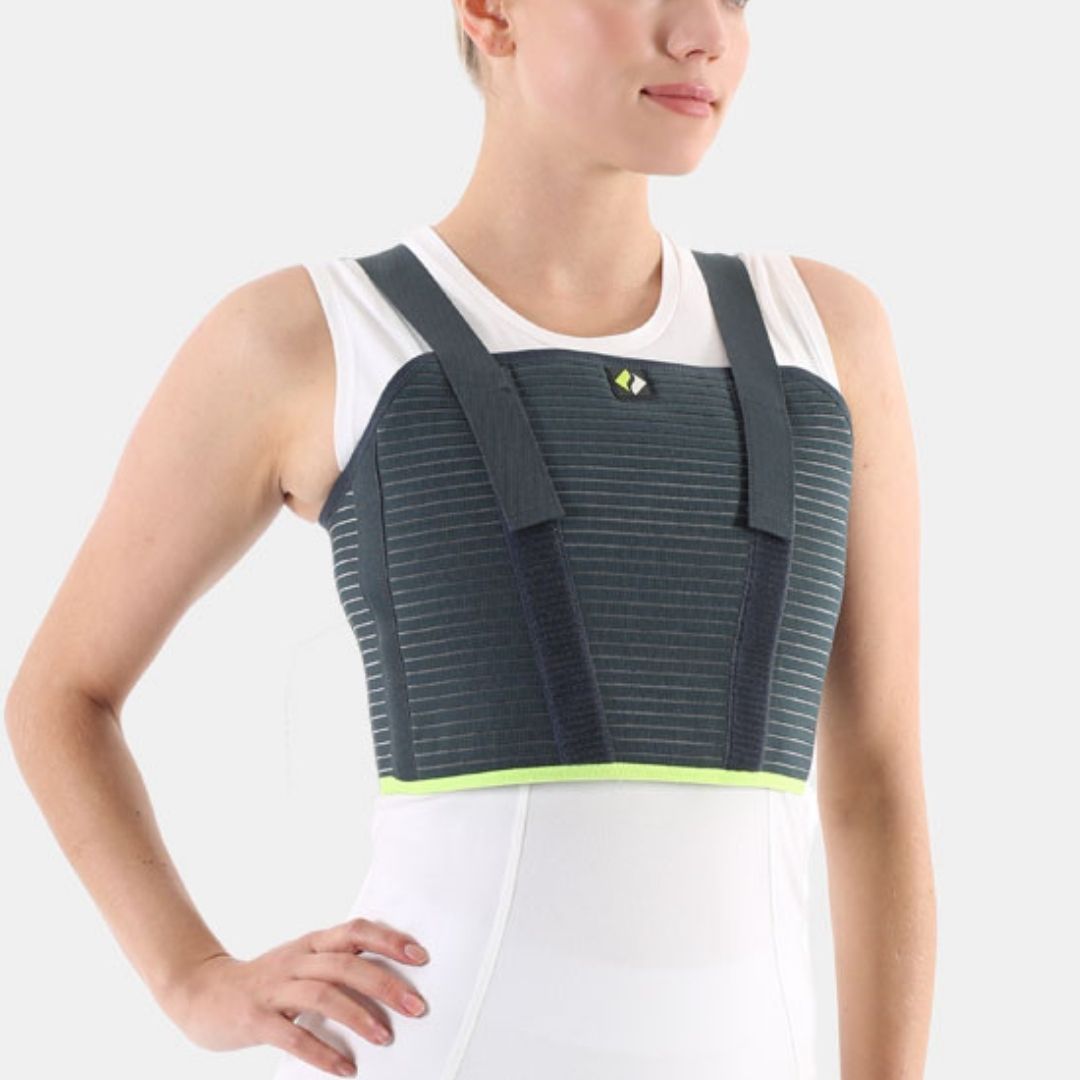 Esnek hava alabilen, terletmeyen antialerjik misinalı kumaştan üretilmiştir.Sternum bölgesi havlu kumaşla desteklenmiş olan göğüs korsesidir. Göğüs üzerinde ikiadet balen bulunmaktadır. Ani hareketten kaynaklı ağrıyı azaltarak sternumu destekler ve korur.
